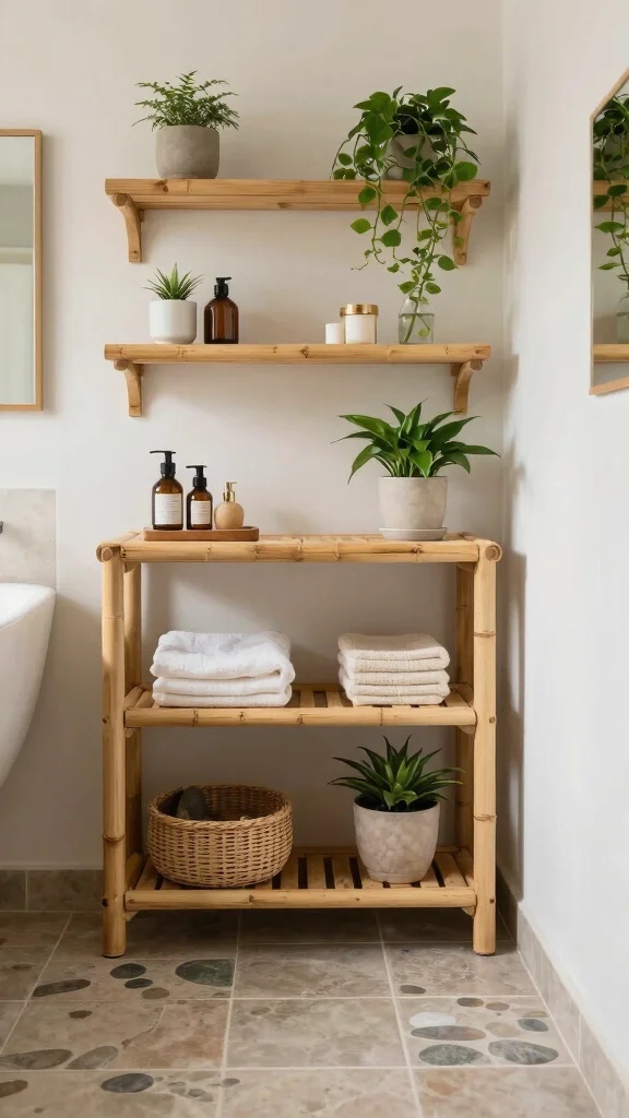 – Utilize bamboo or wooden shelves for an organic touch.