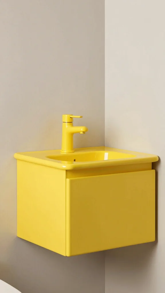 These hues create a cheerful and open atmosphere, perfect for small bathroom design.