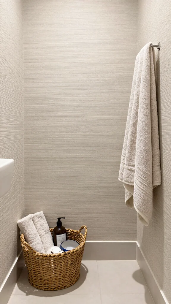 Combine smooth tiles, woven baskets, and soft textiles to create a dynamic and inviting space.