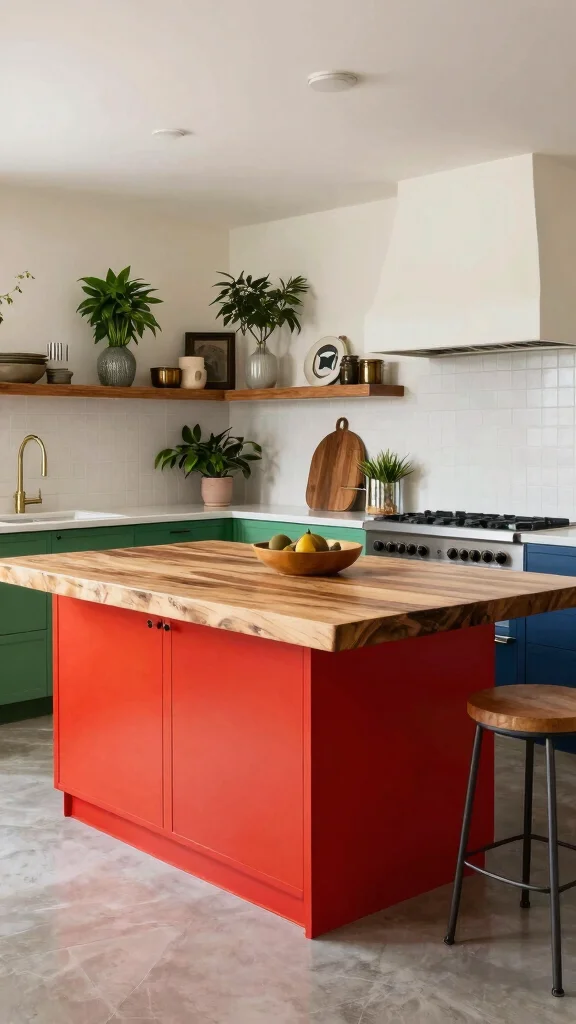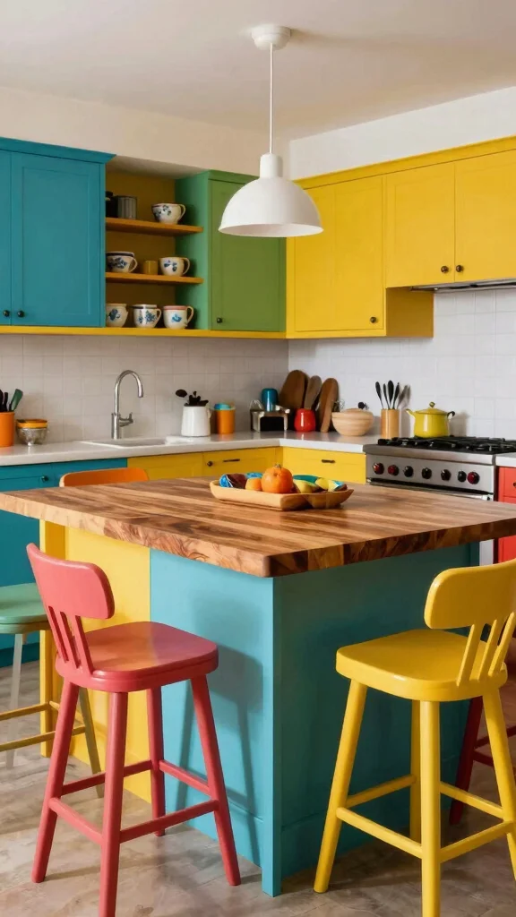 – Use vibrant bar stools or decorative kitchenware for lively accents.