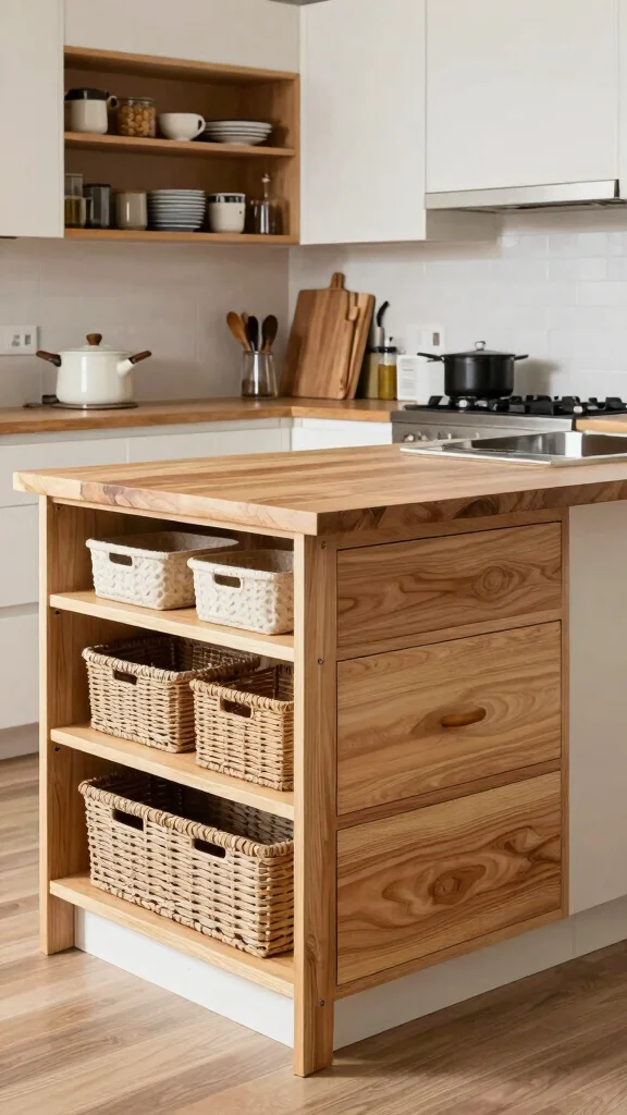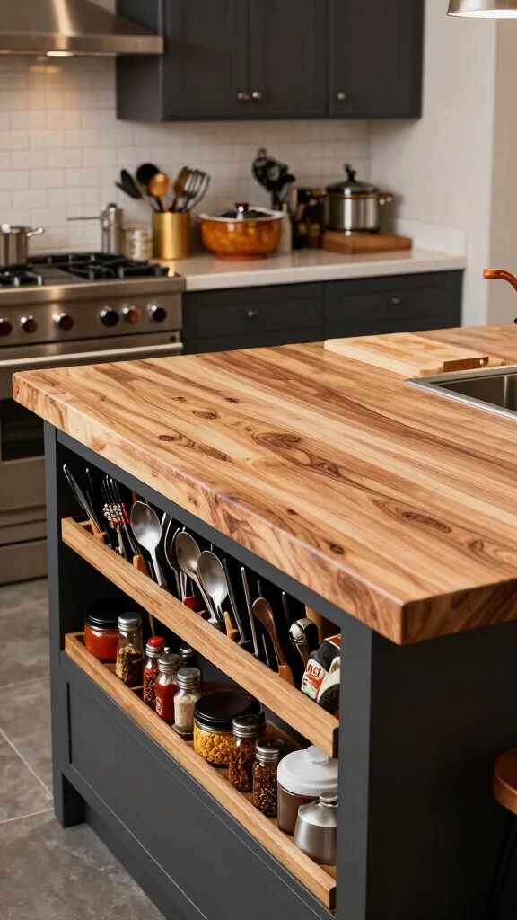 Your butcher block kitchen island can be a hub for creative storage solutions. Maximize your space by incorporating shelves, drawers, or cabinets for organized storage. This not only boosts functionality but also keeps your kitchen neat and tidy.