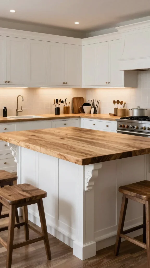 – Choosing a lighter butcher block to harmonize with white cabinets.