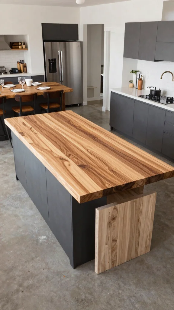 Opting for a multi-level butcher block kitchen island adds both functionality and visual intrigue. This design typically features a raised area for dining or serving, while the lower section provides ample prep space. It’s especially useful for small gatherings, allowing guests to mingle comfortably while you cook.