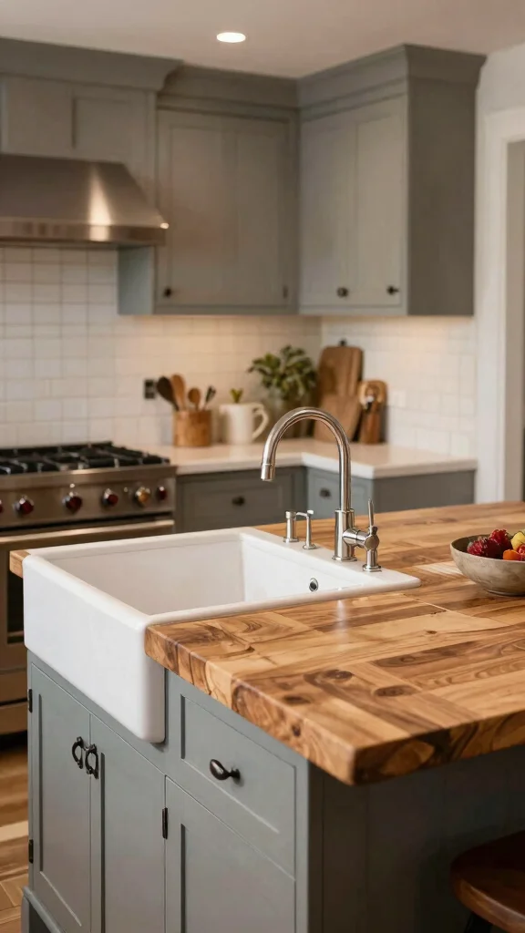 Integrating a farmhouse sink with your butcher block kitchen island creates a seamless blend of style and functionality. This combination not only provides ample workspace but also enhances the rustic charm of your kitchen, perfect for preparing meals or hosting gatherings.