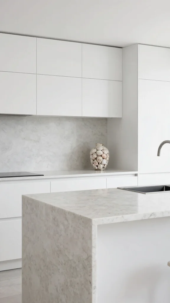 If you prefer a modern approach, a sleek and minimalist kitchen island can still evoke a coastal feel. Opt for clean lines, a monochromatic palette, and materials like quartz or polished marble for a sophisticated look. Accentuate the space with simple coastal touches, such as a decorative glass vase filled with ocean-inspired elements. This design celebrates sophistication while ensuring the kitchen remains fresh and airy.