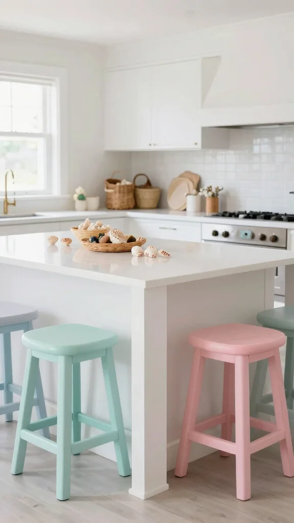 Adding seashells and starfish to your kitchen island decor introduces a delightful coastal touch. Use clear glass vases filled with assorted seashells or position a handmade starfish centerpiece on the island for a whimsical yet elegant display. This approach not only enhances the beachy vibe but also brings personal memories of seaside adventures into your space. Opt for a soft, neutral island color to ensure these natural elements shine beautifully.
