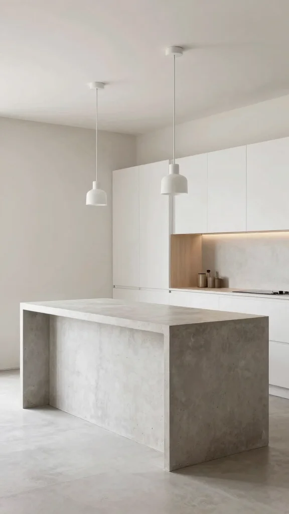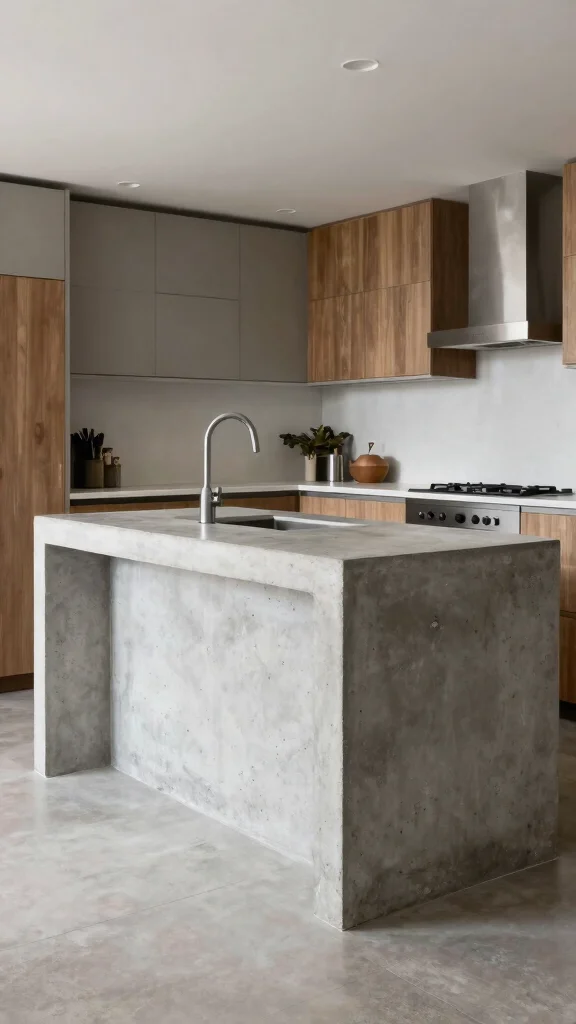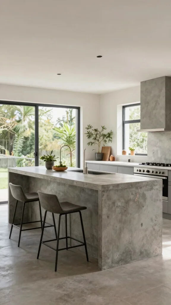 Exploring concrete kitchen island ideas can give you a bold modern edge. Consider options like a seamless concrete countertops island with an integrated seating overhang for minimalist kitchen islands and a clean silhouette that fits contemporary kitchen trends.