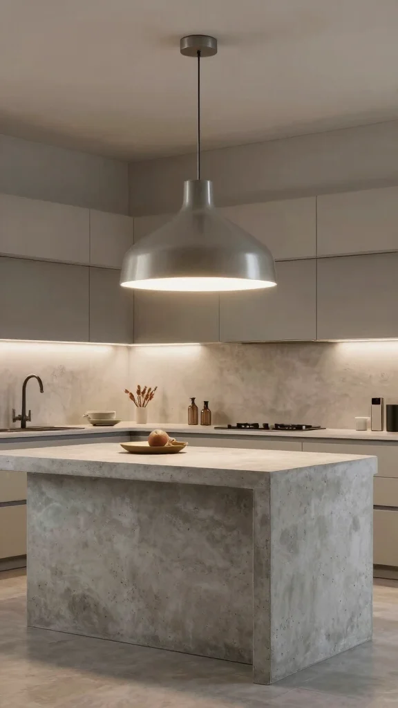 Light fixtures can dramatically alter the ambiance of your kitchen, especially when paired with a concrete island. Consider oversized pendant lights or artistic chandeliers that create a striking statement above your island. The contrast between the raw concrete and elegant lighting can be visually stunning, elevating the overall design of your kitchen.
