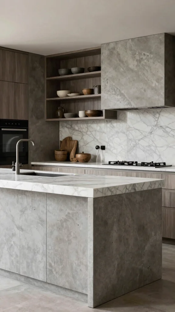 Combining the raw appeal of concrete with the elegance of natural stone creates a sophisticated look that can elevate any kitchen. Picture a concrete island topped with a luxurious layer of granite or marble, adding texture and a high-end feel to your space. This combination not only enhances visual interest but also brings a touch of luxury to your everyday cooking area.