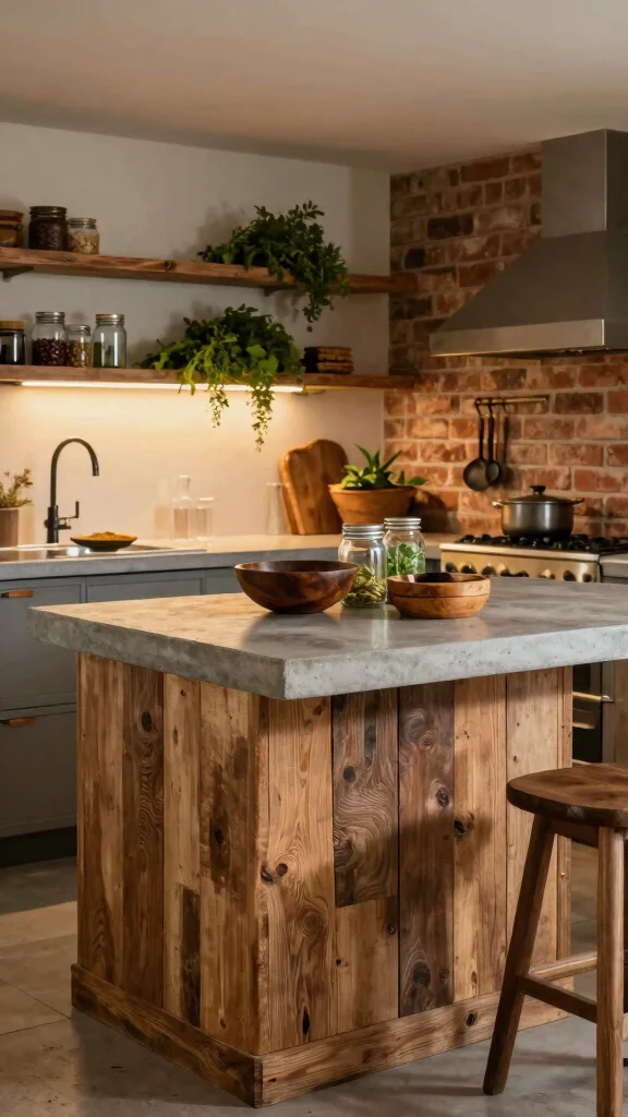 For a budget-friendly approach, consider sourcing reclaimed wood from local suppliers or using affordable alternatives that mimic the look. Open shelving around the island can provide easy access to your favorite cooking essentials while adding to the rustic feel.