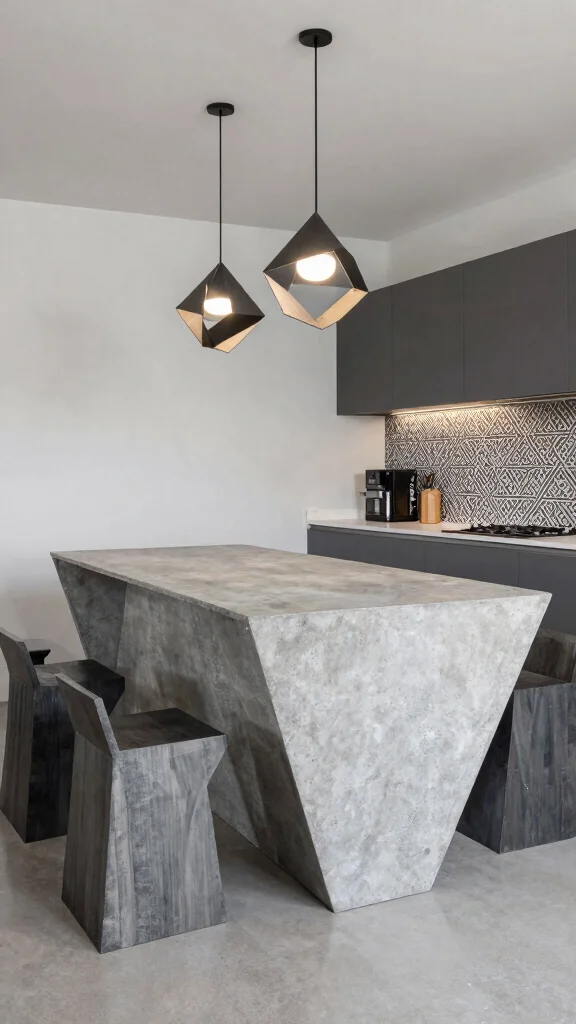 To enhance this geometric approach, consider pairing your island with geometric pendant lights for a cohesive look. Using angular stools that complement the shape will further elevate the design, while a patterned backsplash can echo the island’s geometry.
