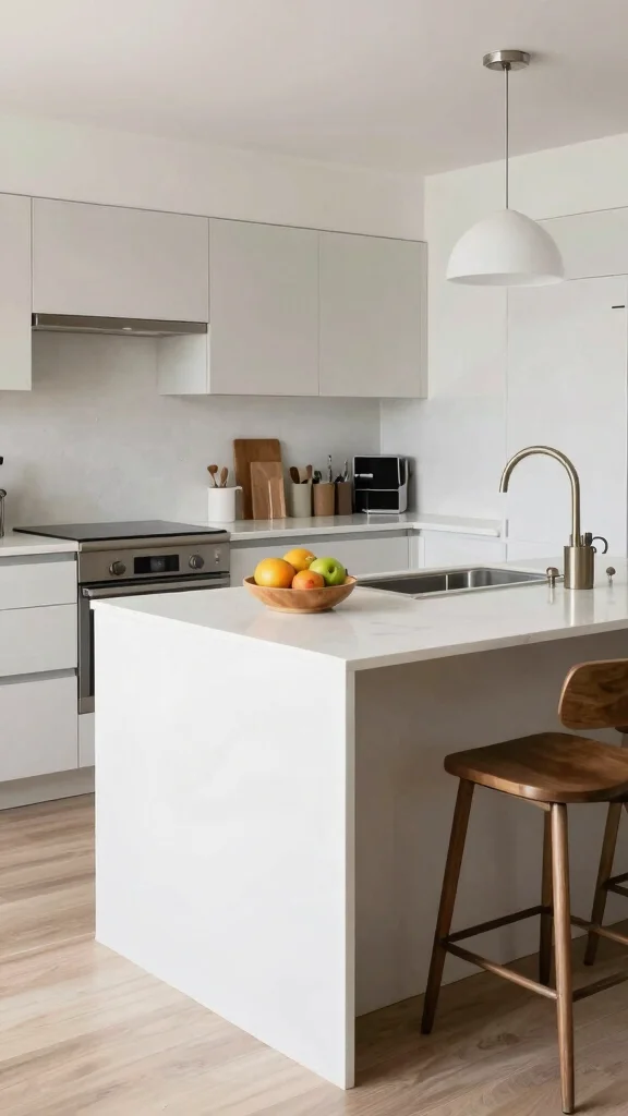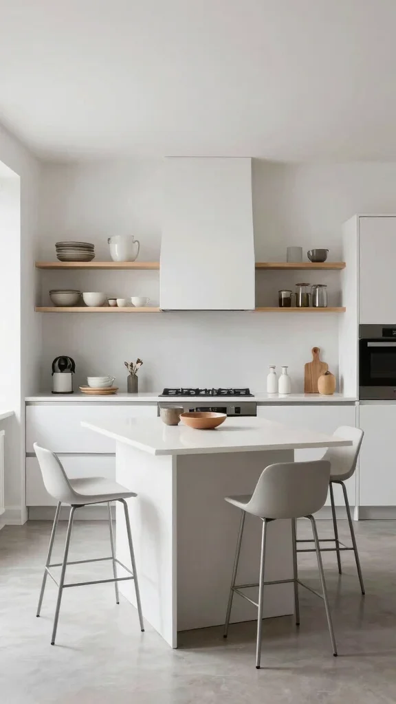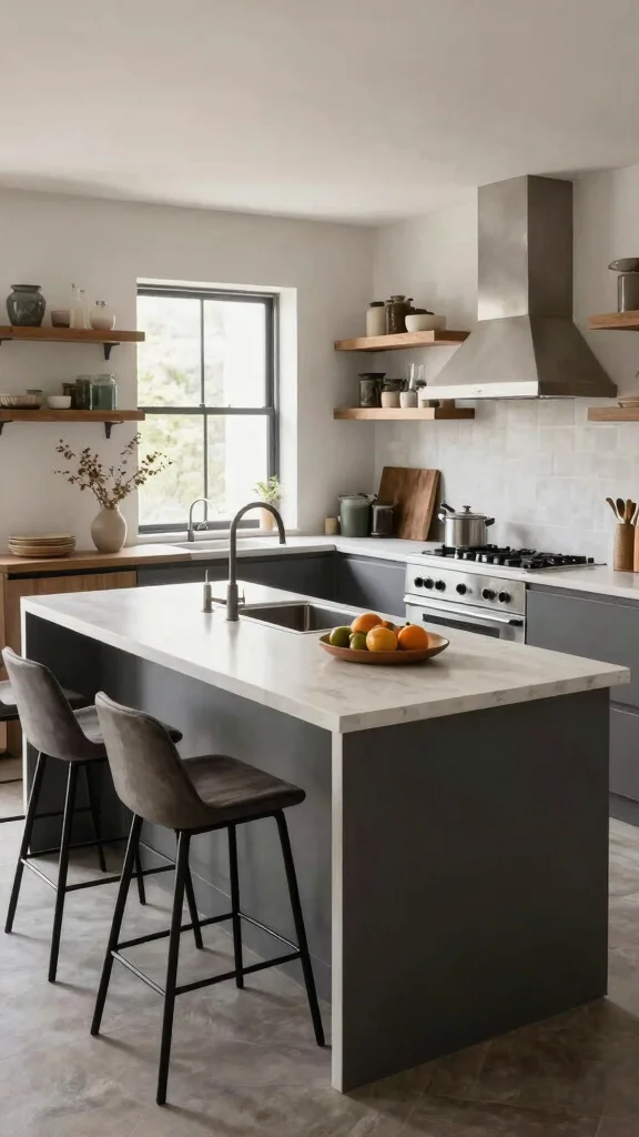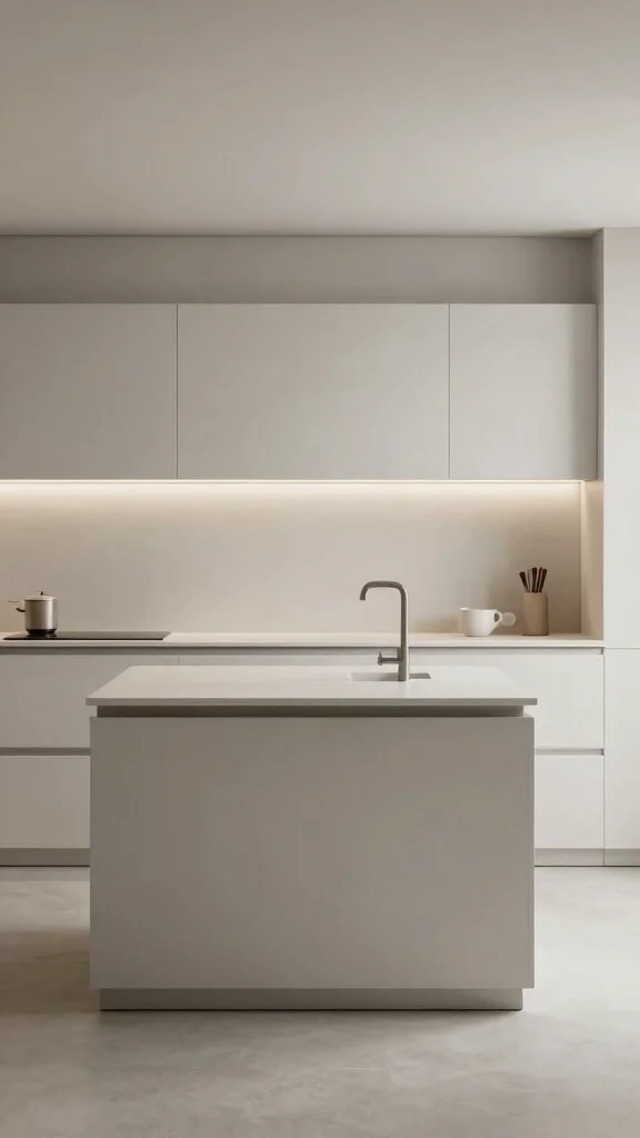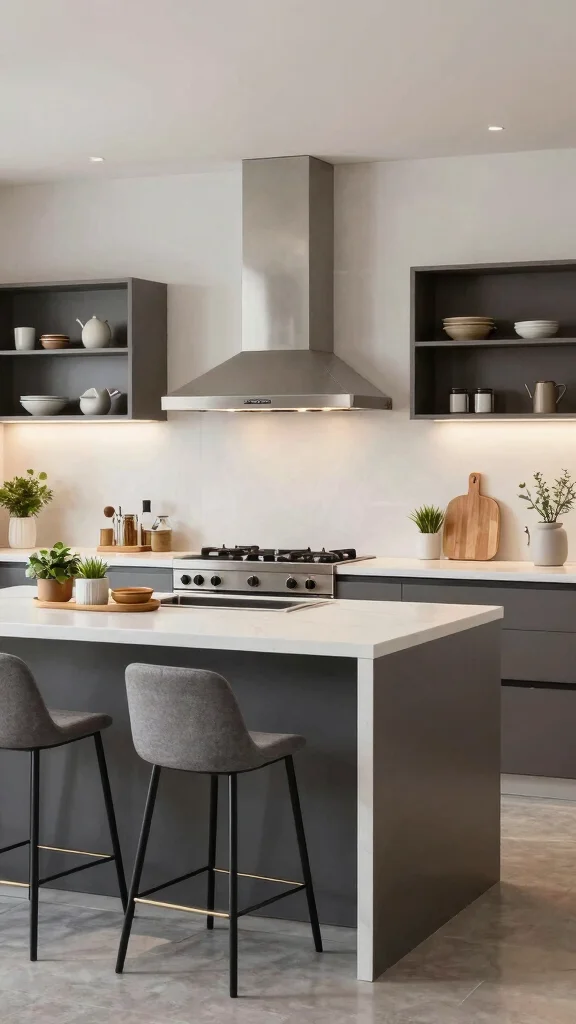 To achieve this aesthetic, opt for monochrome color schemes that enhance sophistication. Hidden storage solutions can help keep the island tidy, contributing to a serene cooking environment.