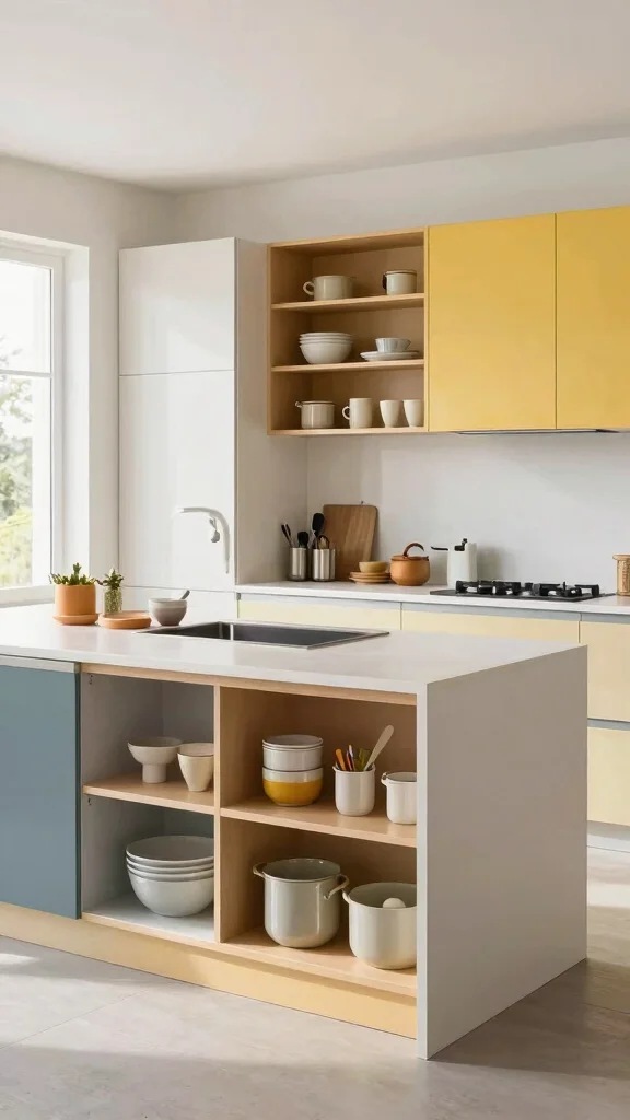 This approach not only optimizes space but also maintains an inviting atmosphere in your kitchen.