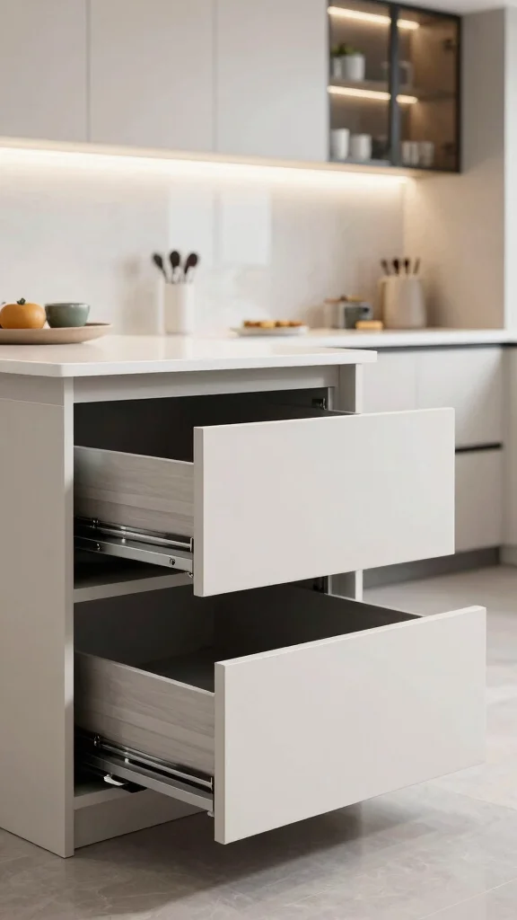 To enhance this functionality, consider opting for pull-out shelves that provide easy access to pots and pans. Drawer dividers can help keep utensils organized and tidy, making the cooking process more efficient.