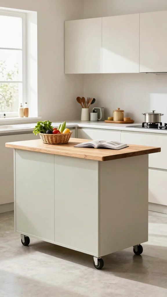 A portable kitchen island on wheels is a fantastic solution for maximizing space! This clever design allows you to move the island exactly where you need it, perfect for small kitchens. Whether tucked away in a corner or pulled out for extra prep space, it offers flexibility while maintaining a stylish appearance.
