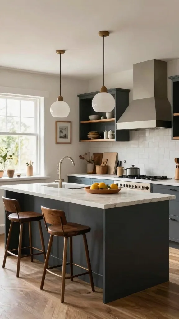 To implement this idea, consider using a color wheel to find the perfect hue that complements your kitchen theme. Contrasting bar stools can further enhance the visual interest without overspending.