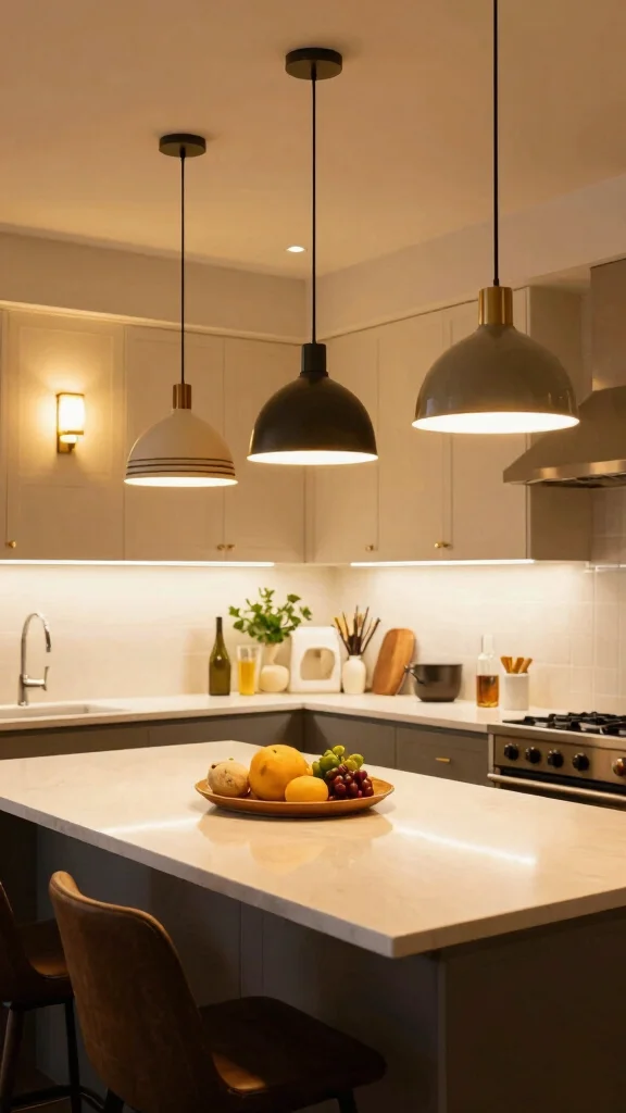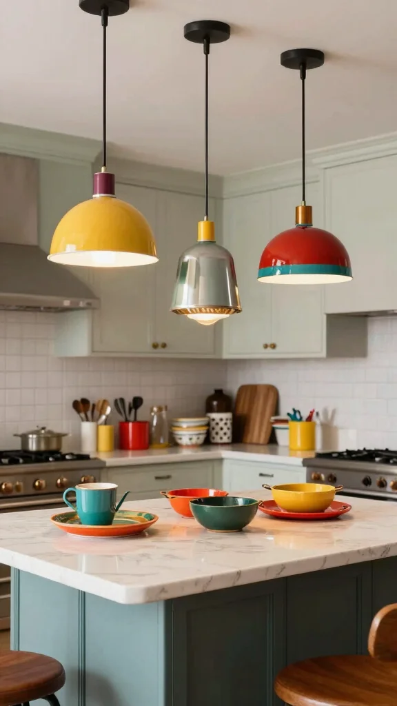 Pendant lights are a staple, but you can layer with other decorative light fixtures like a small chandelier, a linear light, or even wall-mounted sconces for depth.