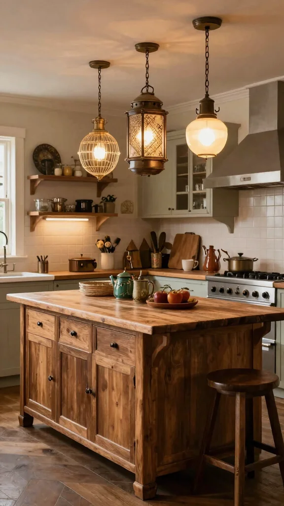 Introduce a touch of history to your kitchen with upscaled vintage fixtures. These timeless pieces add character and elegance to your kitchen island while seamlessly blending with rustic decor. Vintage lighting often features intricate designs that make them stand out beautifully.