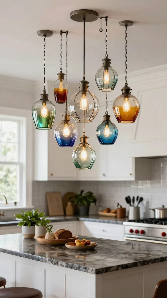 Experimenting with various glass types—like frosted or colored—can help you achieve your desired lighting effect. For a layered look, consider adjusting the lengths of the pendants to create depth and intrigue.