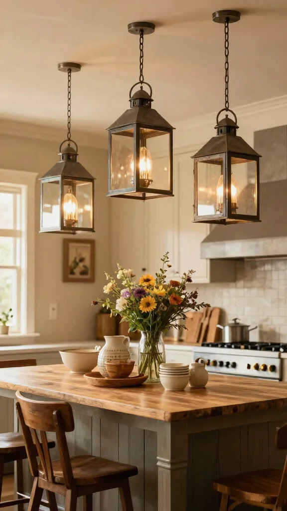 Farmhouse lanterns evoke nostalgia while adding a stylish touch to your kitchen, making it a warm and inviting space.