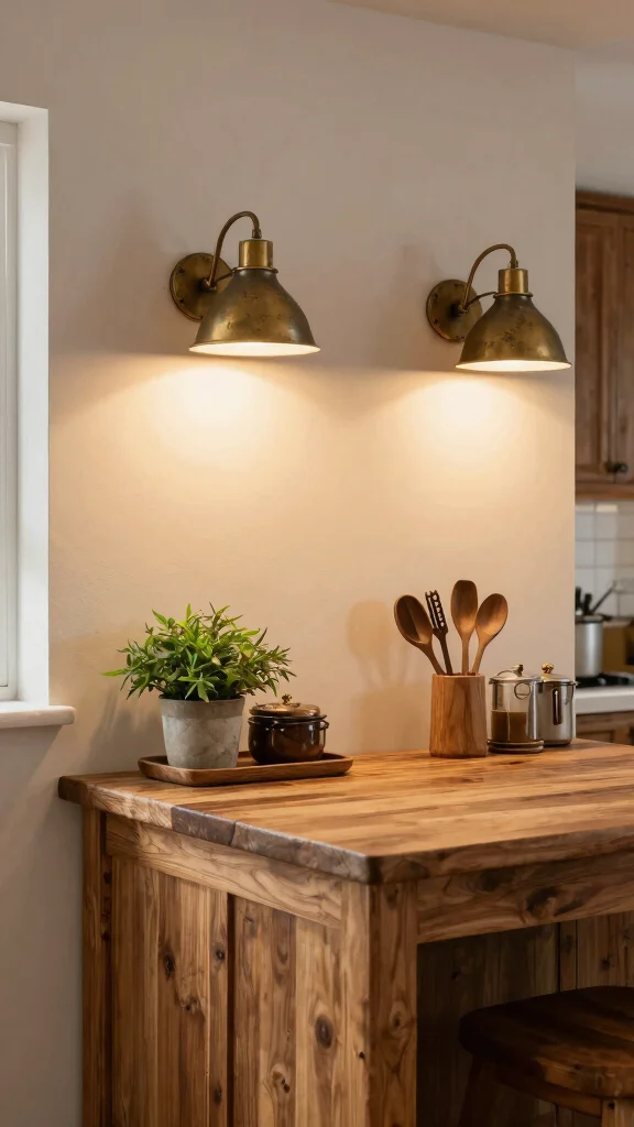 Choose finishes like aged brass or wrought iron to emphasize rustic appeal. Pairing sconces with larger pendant lights can create a layered lighting effect that feels warm and inviting.