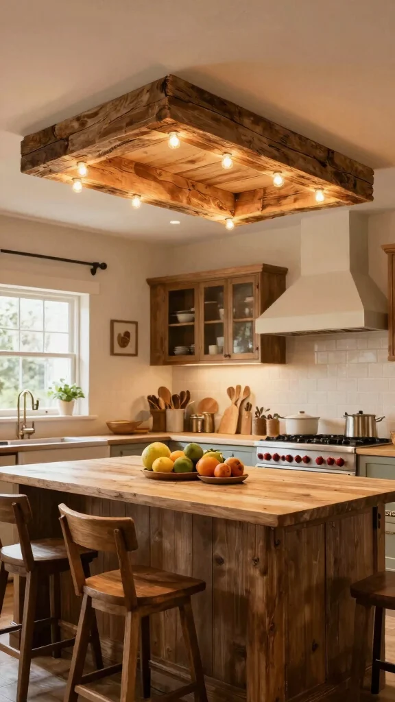 Reclaimed wood beam lighting not only enhances functionality but also adds significant visual interest to your kitchen.