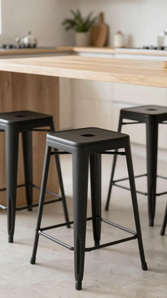 Embracing a minimalist design, metal stools effortlessly introduce an industrial chic vibe to your kitchen island. Their sleek profiles and simple lines ensure they harmonize with a clean aesthetic, avoiding clutter while making a statement. Available in finishes like brushed nickel or matte black, these stools adapt beautifully to various decor styles, enhancing visual appeal without overwhelming the space.