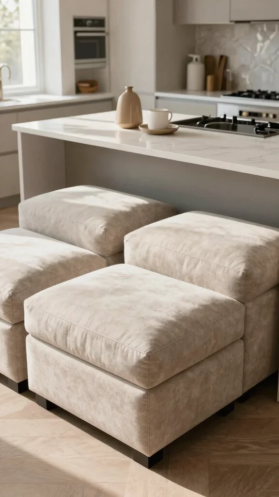 Ottomans can enhance your kitchen island seating with both style and versatility. These versatile pieces can serve as additional seating or surface space for serving dishes or drinks, making them highly functional. Look for ottomans that feature storage capabilities to help keep your kitchen organized and clutter-free.