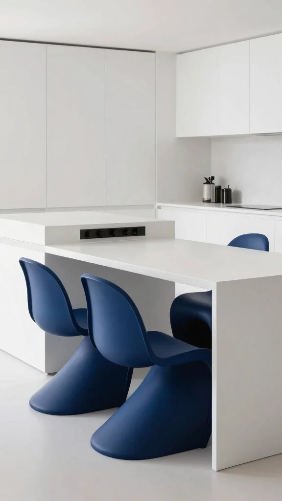 To let these statement pieces shine, keep the surrounding decor minimal, pairing them with a simple island for visual harmony. This balance allows the chairs to make a bold declaration without overwhelming the space.