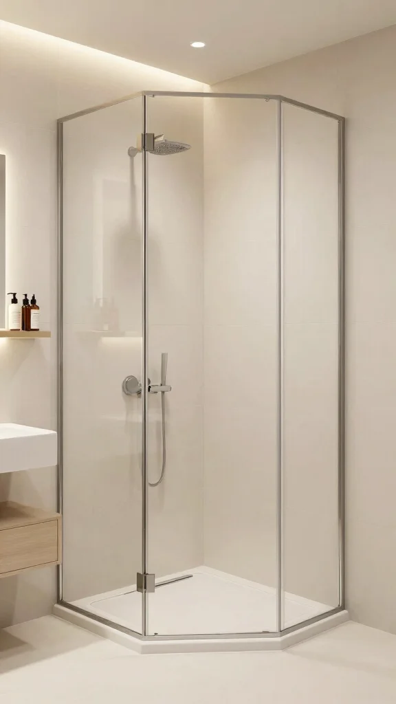 Using clear glass panels can enhance the feeling of spaciousness while allowing natural light to illuminate the area. Pair this setup with a compact vanity or a wall-mounted sink to make the most of your floor space.