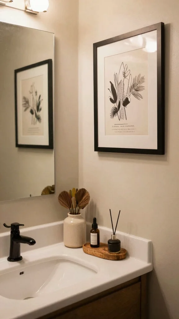 Your small bathroom should be a reflection of your personality, and adding personal touches can make it feel uniquely yours. Think about incorporating framed photos, artwork, or distinctive decor items that resonate with your style and interests.
