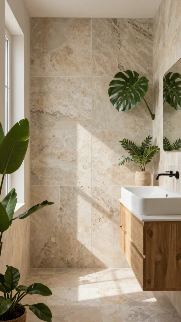 Large format tiles can transform your small bathroom by creating a sense of spaciousness. With fewer grout lines, they offer a clean, uniform look that enhances the overall flow of the space. Available in various materials, including eco-friendly options, these tiles are practical and stylish.