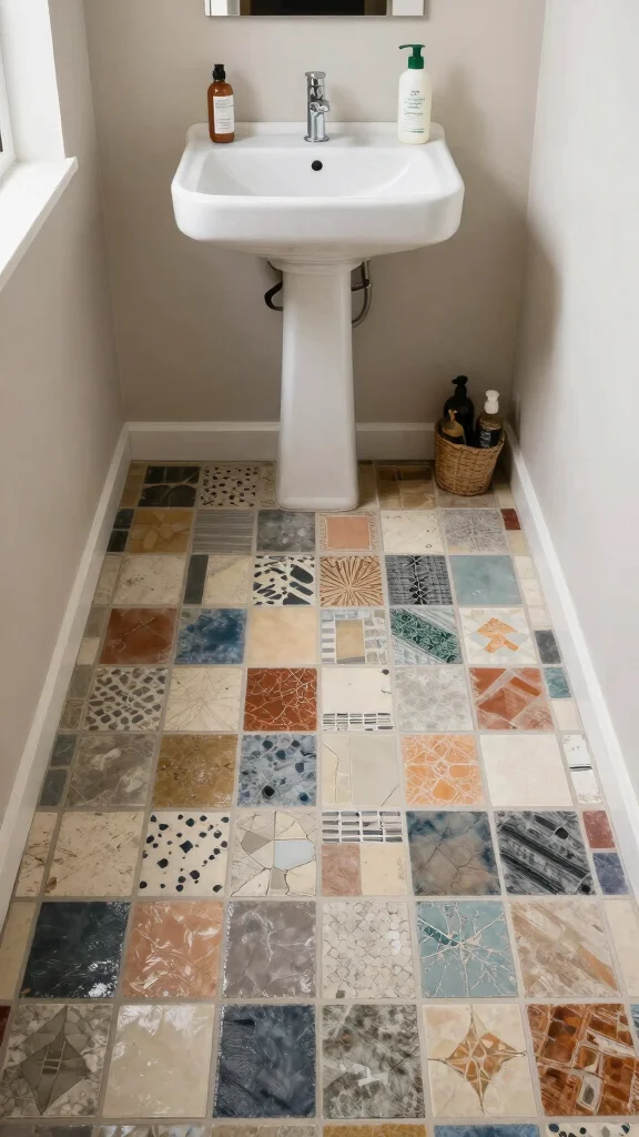Self-adhesive tiles offer an easy and budget-friendly solution for a DIY small bathroom makeover. Available in various designs, these tiles can be applied directly over existing surfaces, making them a fantastic eco-friendly renovation choice. Their flexibility allows for creative expression without requiring extensive tools or skills.