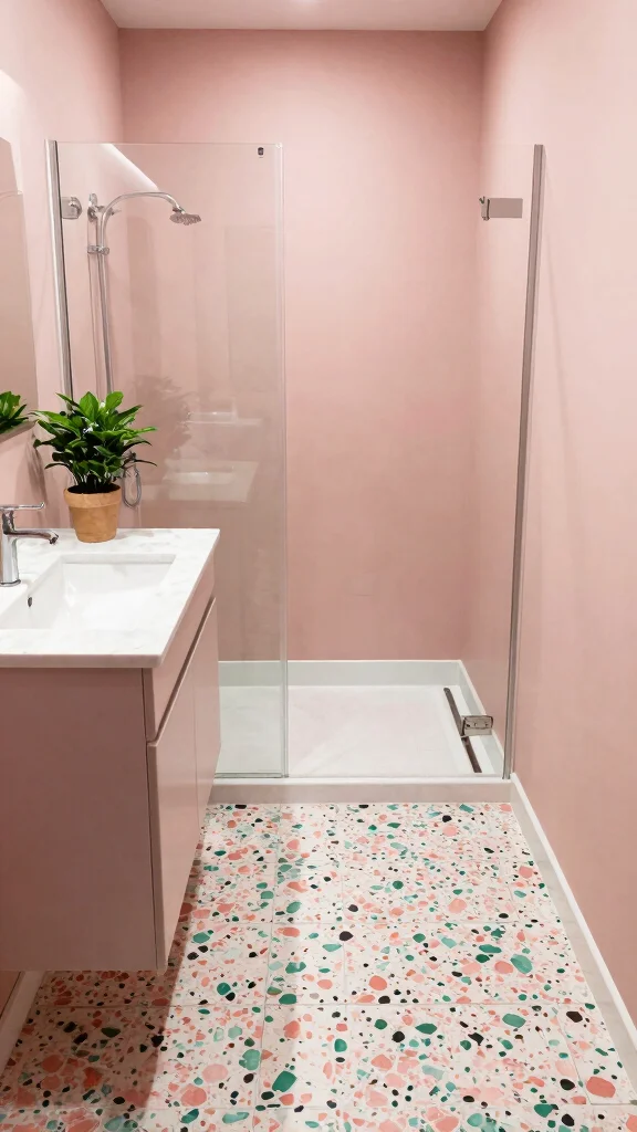 For a seamless look, consider using larger terrazzo tiles on the floor, allowing their vibrant patterns to take center stage. Pairing them with neutral bathroom fixtures ensures the terrazzo remains the star of the show, while an accent wall can create a striking focal point.
