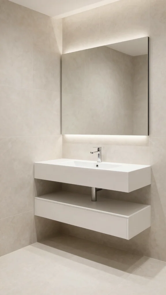 Keep the look cohesive by running similar light-colored tiles on both walls and floors. Use wall and floor tiles in a large format (e.g., 12×24 or bigger) to cut grout and visually enlarge the space. Stick to a single light palette for small space decor and finish with a glossy or satin surface to reflect light, which helps modern bathroom aesthetics. Choose ceramic tile options with recycled content, and use low-VOC adhesives to keep the eco-friendly vibe intact. Add a small eco-friendly accent, like a recycled-glass mosaic, sparingly as a focal point.