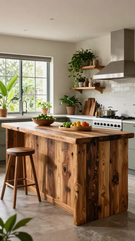 Bringing natural elements into your waterfall island design fosters an earthy, organic feel.