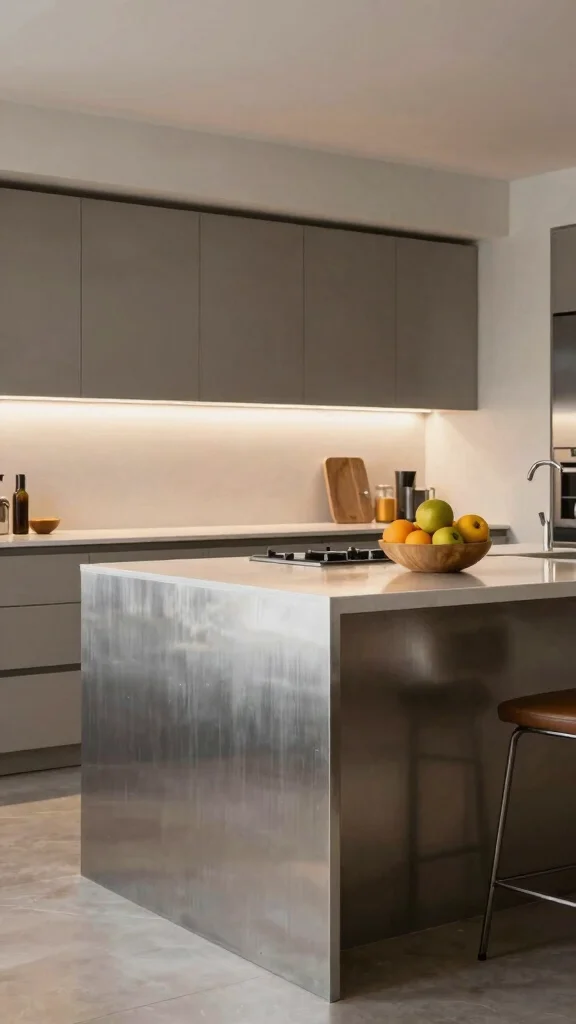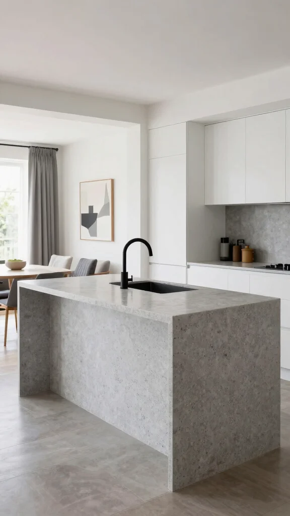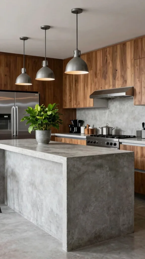 A concrete waterfall island can serve as a focal point, harmonizing beautifully with sleek stainless steel appliances.