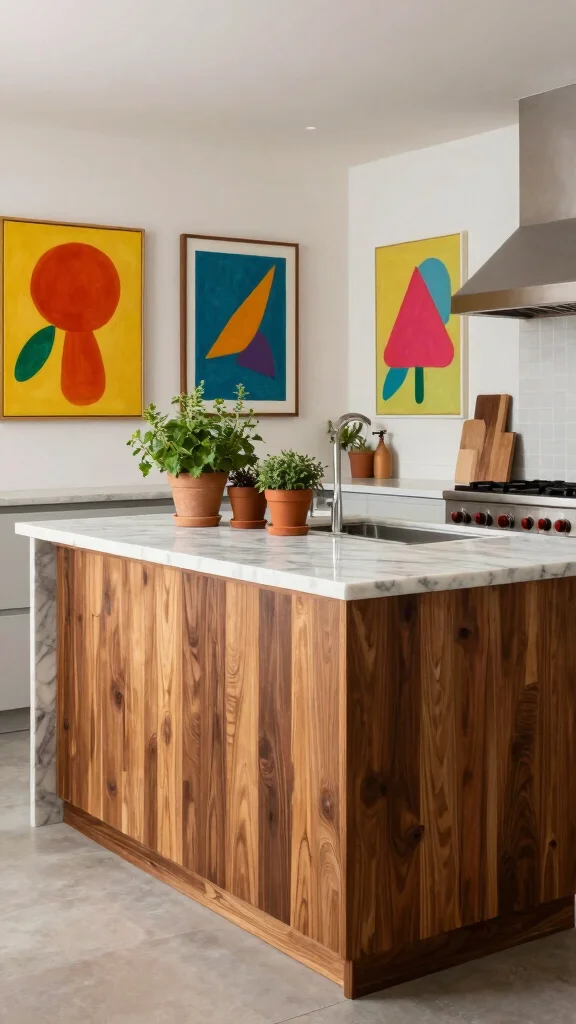 Mixing materials can create a captivating and unique look for your kitchen island.