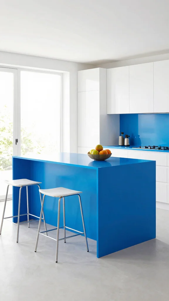Opt for bold colors like deep blue or bright red to create a striking visual against neutral cabinetry.