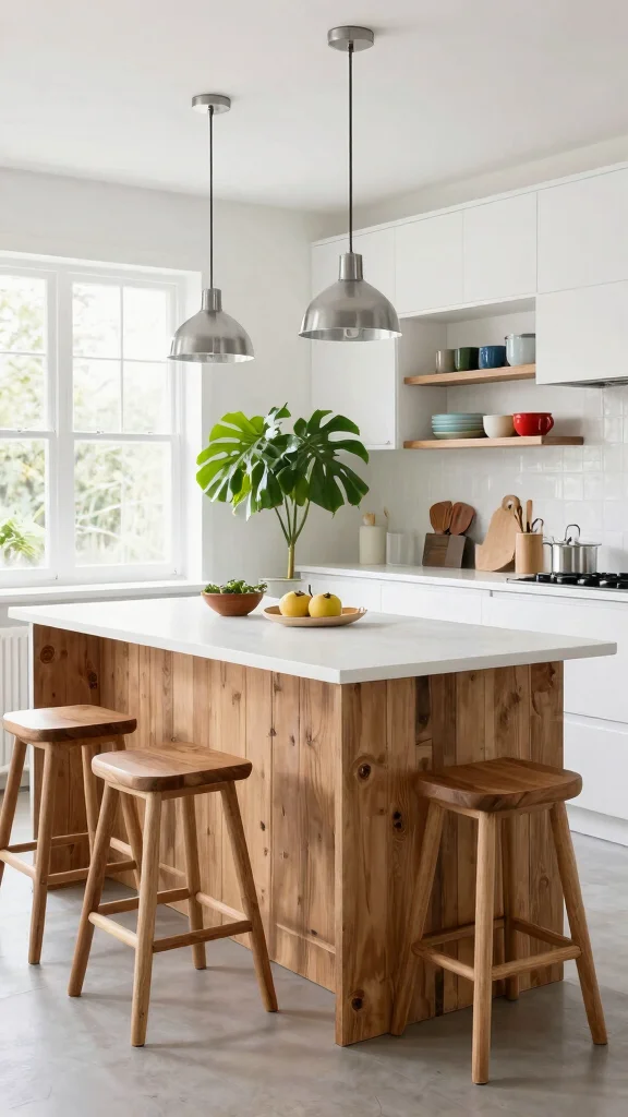 Embracing reclaimed wood accents in your white kitchen island introduces a delightful blend of charm and sustainability. This pairing of a sleek white island with rustic wood elements creates a striking contrast that feels both inviting and warm. Imagine using weathered barn beams or salvaged wood planks, which can be either stained for a rich hue or left natural for a rustic vibe. This not only tells a story of upcycling but also infuses your kitchen with character and warmth.To make the most of this aesthetic, consider budget-friendly options like sourcing reclaimed wood from local suppliers or DIY projects. You can also mix modern fixtures with vintage wood to connect with broader design trends that favor sustainability and unique character.Tips for Implementation:– Pair white cabinetry with rustic wood shelving for a cohesive look.
