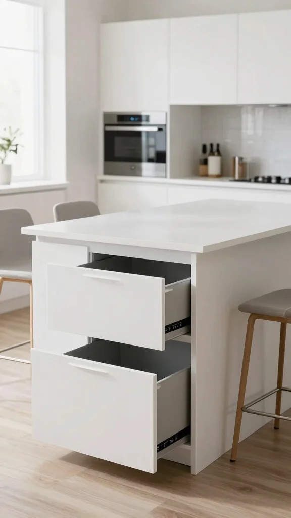 Creating an integrated seating area within your white kitchen island enhances both style and functionality. This thoughtful design encourages casual dining and socializing, transforming your kitchen into a welcoming gathering spot. Picture extending the countertop for bar stools or designing a cozy nook for guests to relax while meals are prepared.To ensure comfort, select stylish seating options that harmonize with your island’s design. You can also use durable materials to enhance longevity and ease of cleaning.Key Considerations:– Choose comfortable seating that complements your island.