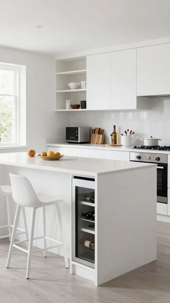 A multi-functional white kitchen island is key for maximizing space and enhancing utility. Imagine incorporating a breakfast bar, prep area, or even extra storage without sacrificing style. Built-in shelves or cabinets can neatly house cookbooks and utensils, creating a seamless flow that blends style with practicality.For an effective design, consider islands with integrated features like a wine fridge or microwave. This can elevate your kitchen’s functionality while being cost-effective.Advantages of a Multi-Functional Island:– Combines various functions in one space-saving area.