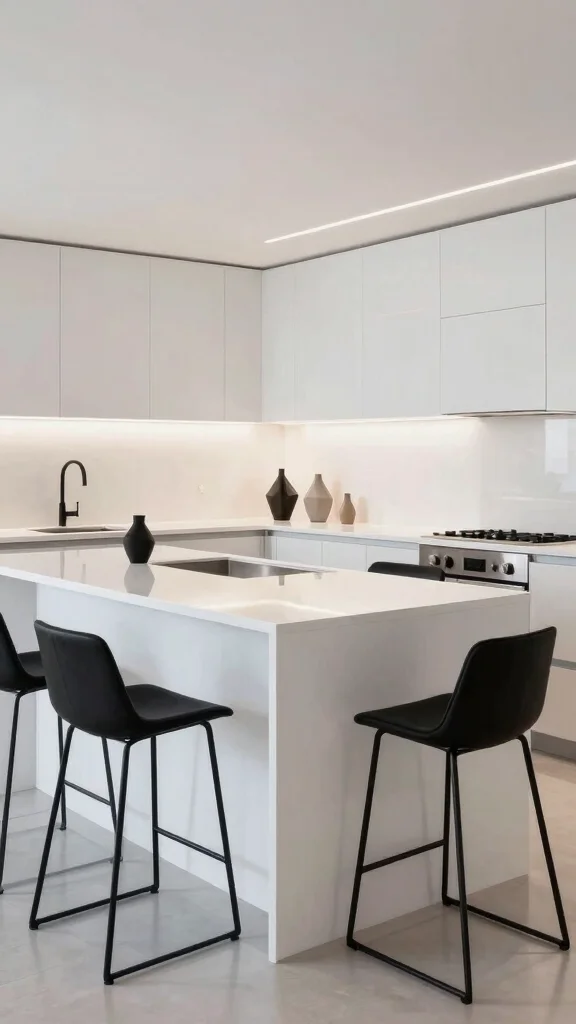 To enhance this aesthetic, consider incorporating metallic accents, such as brass or copper fixtures, that can further amplify the contrast. Think about using pendant lights or barstools in these finishes to tie your design together seamlessly. This approach showcases how strategic contrasts can define modern kitchen trends.