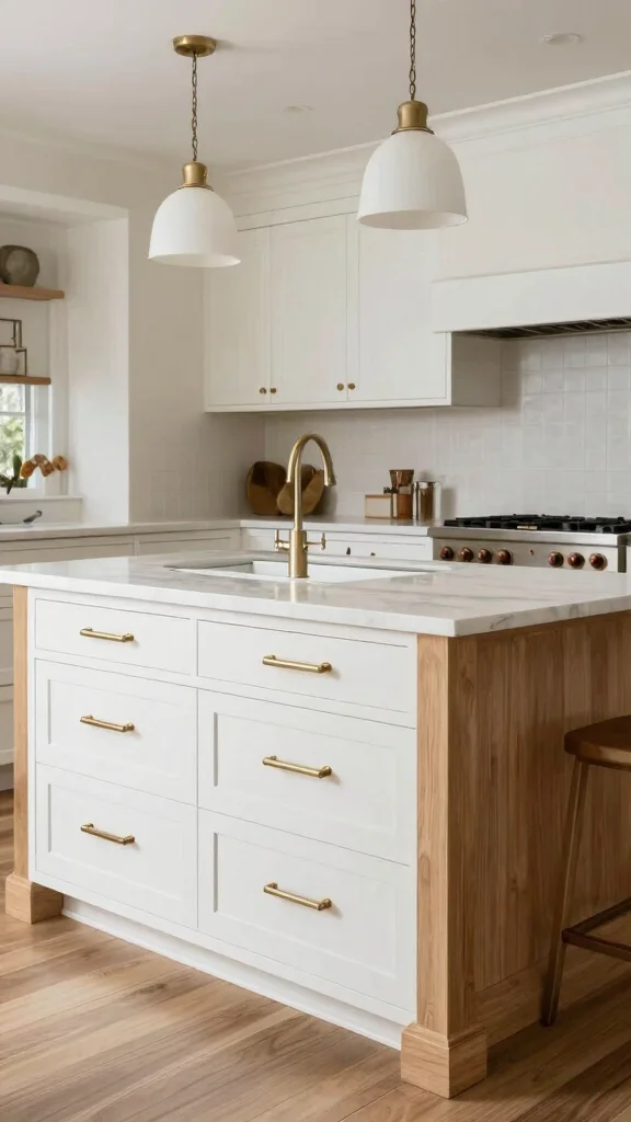 Don’t underestimate the importance of hardware in enhancing your white oak kitchen island’s design. Selecting elegant pulls and knobs can significantly elevate the overall aesthetic, tying in other elements of your kitchen decor. Finishes like brushed nickel, matte black, or antique bronze can create stylish contrasts against the warm wood, adding a polished touch. The right hardware transforms the island’s look, contributing to a sophisticated and cohesive design.