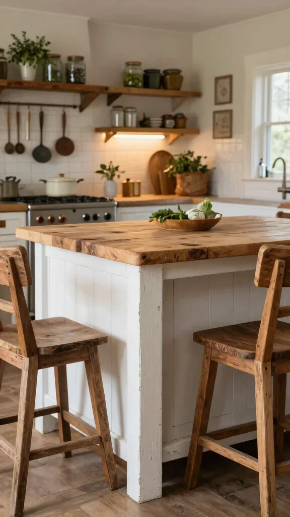 For a truly rustic look, consider opting for a distressed finish on the island to add character. Incorporate greenery with potted herbs or a small plant for a fresh touch that connects the indoors with nature. This design not only creates a warm atmosphere but also invites a sense of nostalgia.
